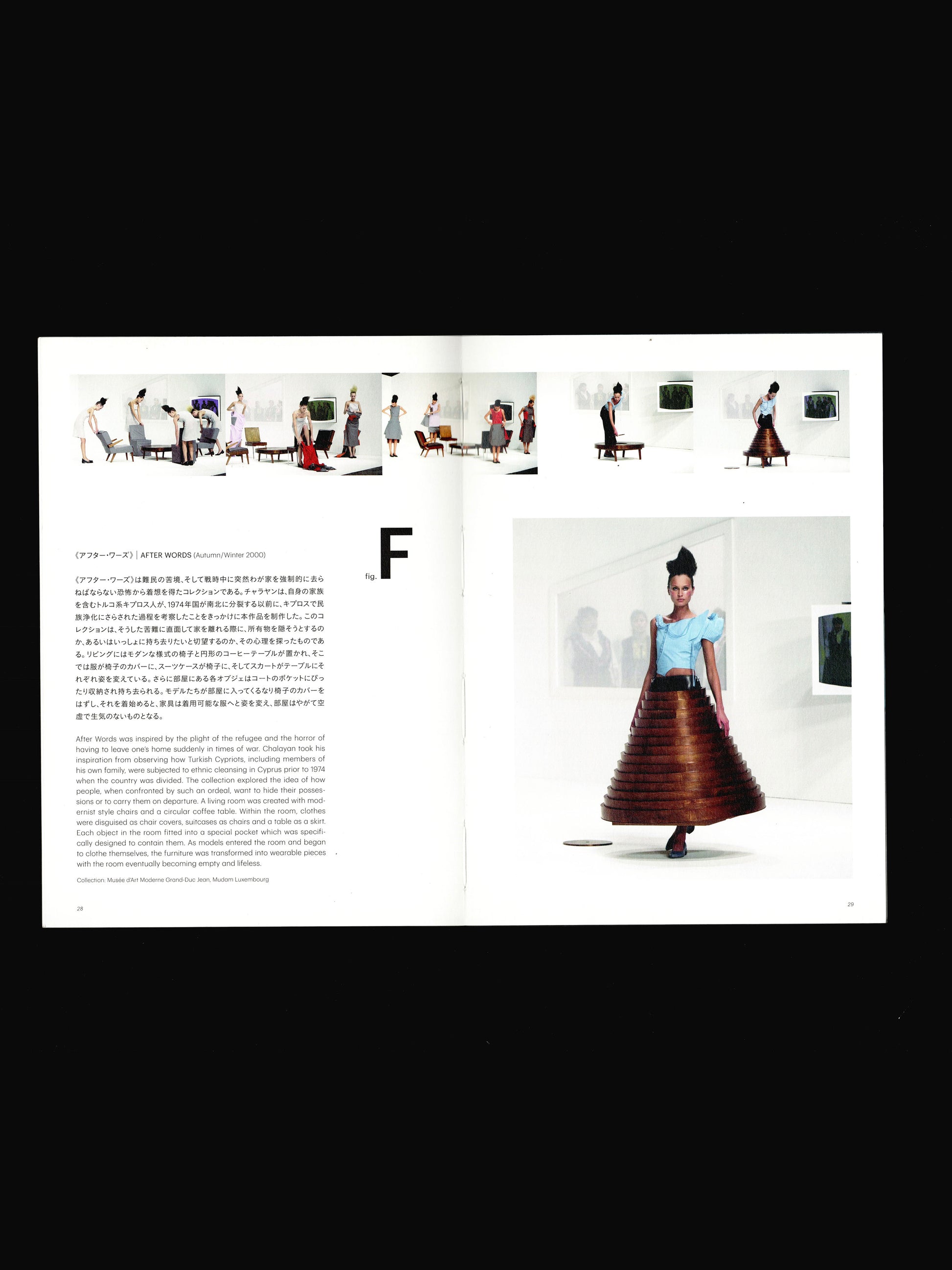 The 2010 Japanese publication 'From fashion and back' explores the work of cutting-edge British designer Hussein Chalayan. The book follows his work from the 1993 graduate show all the way through to 2010. It was published to coincide with the Japanese exhibition of the same name held in Tokyo.