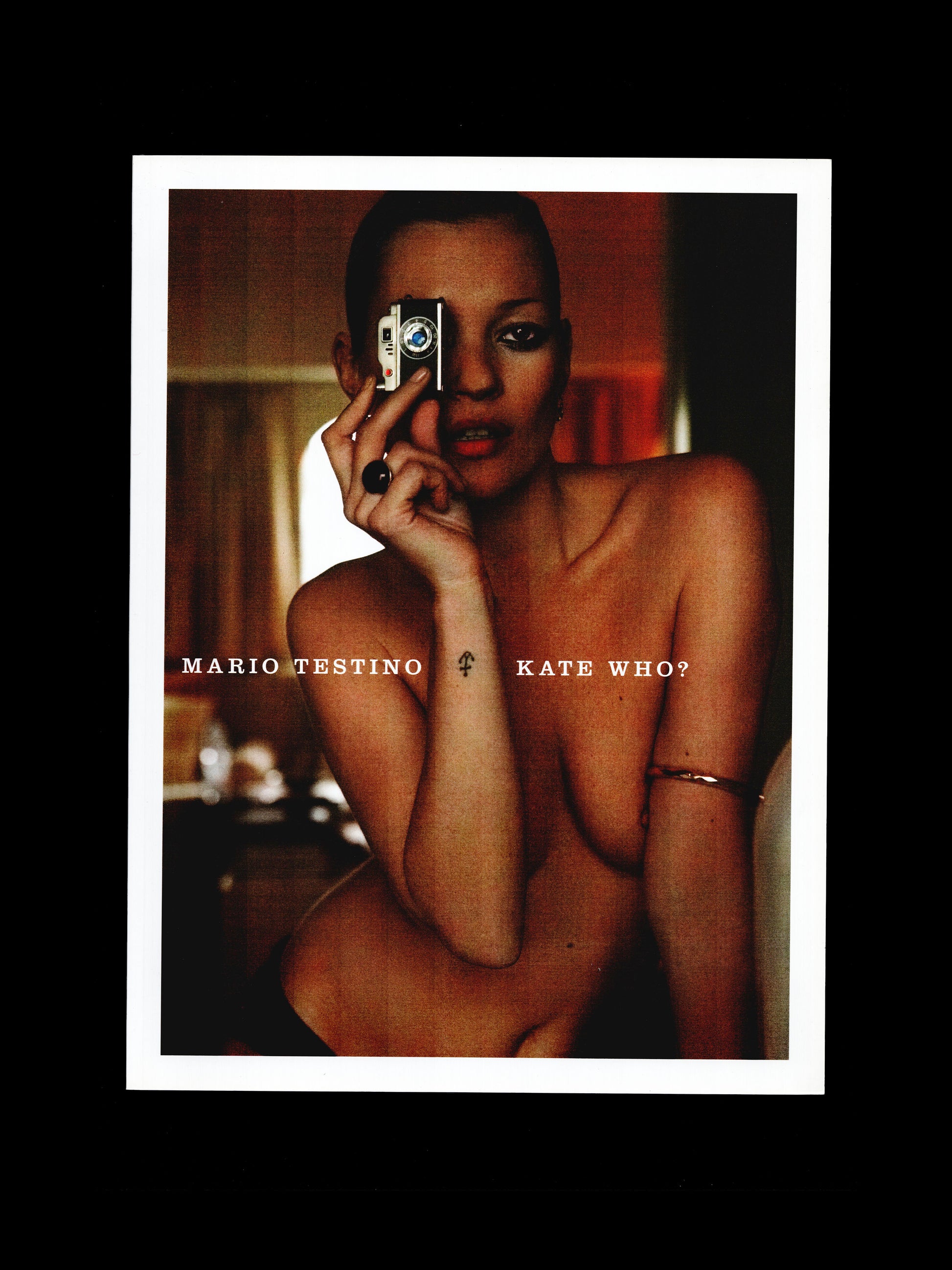 The large scale Kate Who? was published by Phillips de Pury in 2010 to coincide with the eponymous exhibition held at their London galleries and the Saatchi Gallery. It features a selection of large-scale photographs of Kate Moss by Mario Testino. Kate was MArio's muse for a long time, and they had a long-standing relationship. Mario is therefore responsible for sojke of Kate's most iconic images.