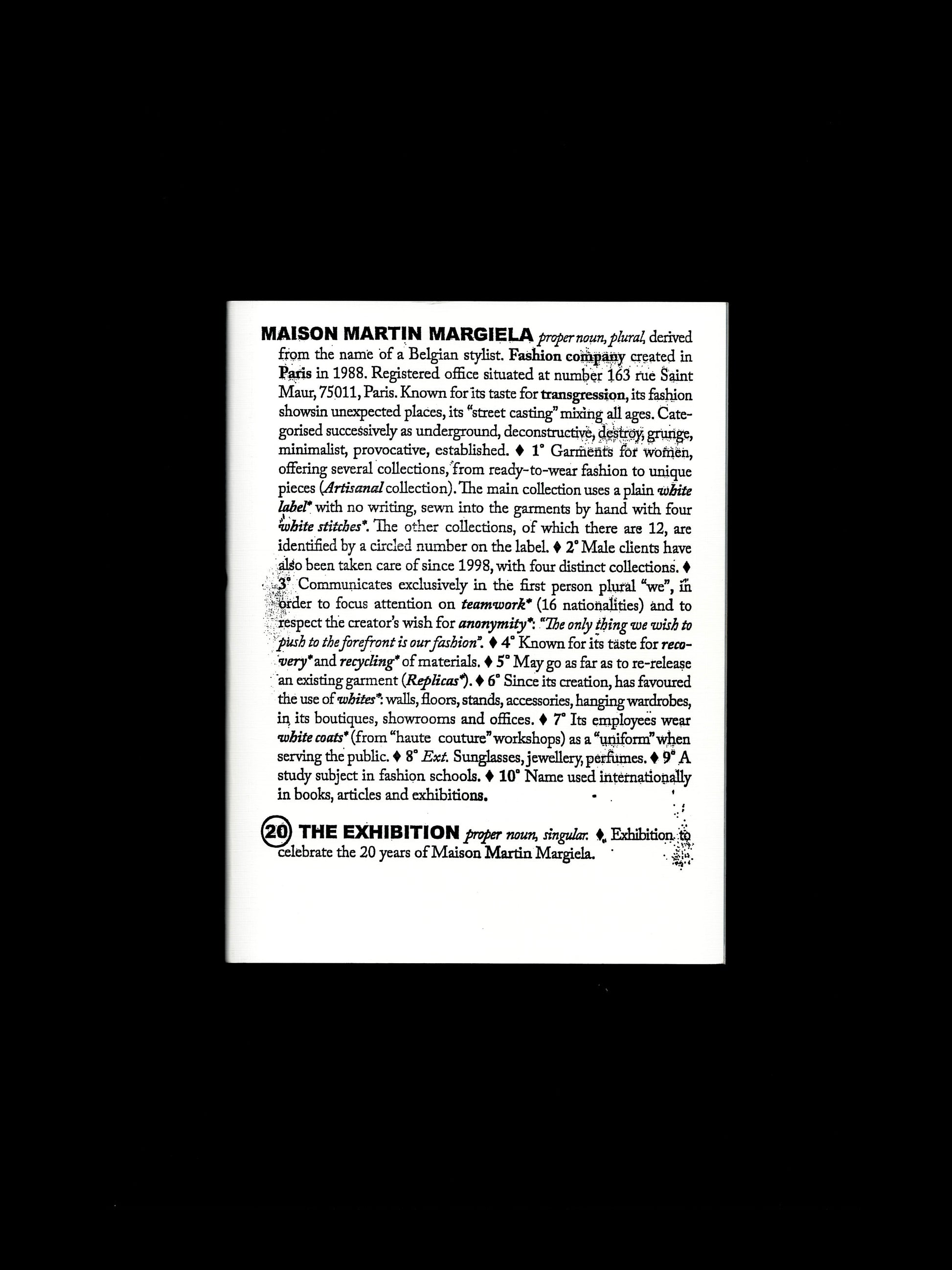 It's the best Margiela book there is. It was published to coincide with Maison Martin Margiela ’20’ The Exhibition, a major touring show celebrating 20 years of work by the influential and enigmatic Belgian fashion designer. Conceived in close collaboration with Maison Martin Margiela and curated by the Mode Museum, Antwerp, the exhibition was later shown at Haus der Kunst, Munich, and Somerset House, London. This book captures Maison Martin Margiela’s deconstructivist, subversive, and often radical approach to fashion through an examination of the themes and influences that have underpinned the fashion house since its creation.